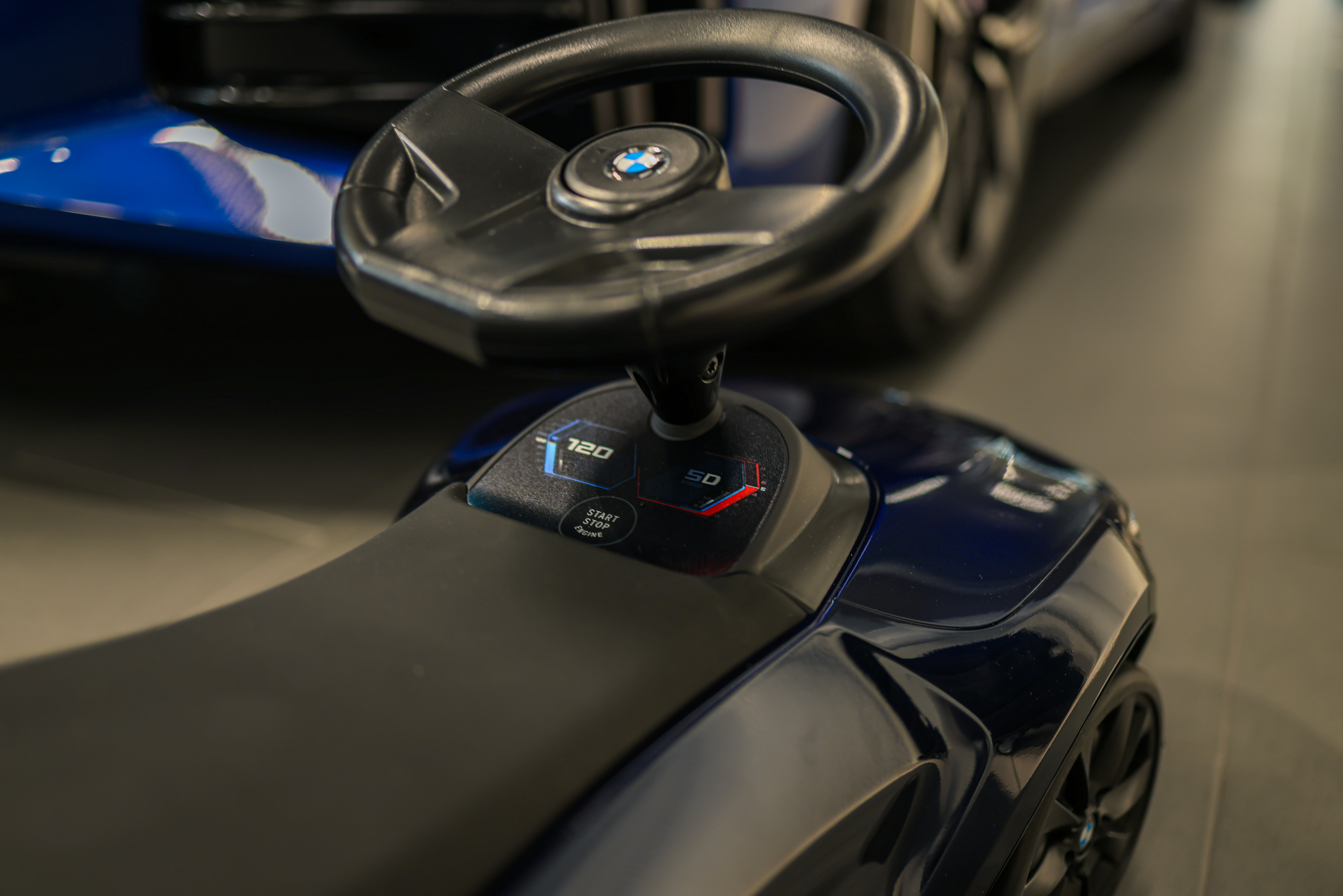 De BMW Babyracer straalt dezelfde klasse uit als de echte modellen. Elk onderdeel is met zorg ontworpen, van het stevige stuur met BMW-logo tot de zachte, fluisterstille banden die zorgen voor comfortabel rijplezier in huis én buiten.