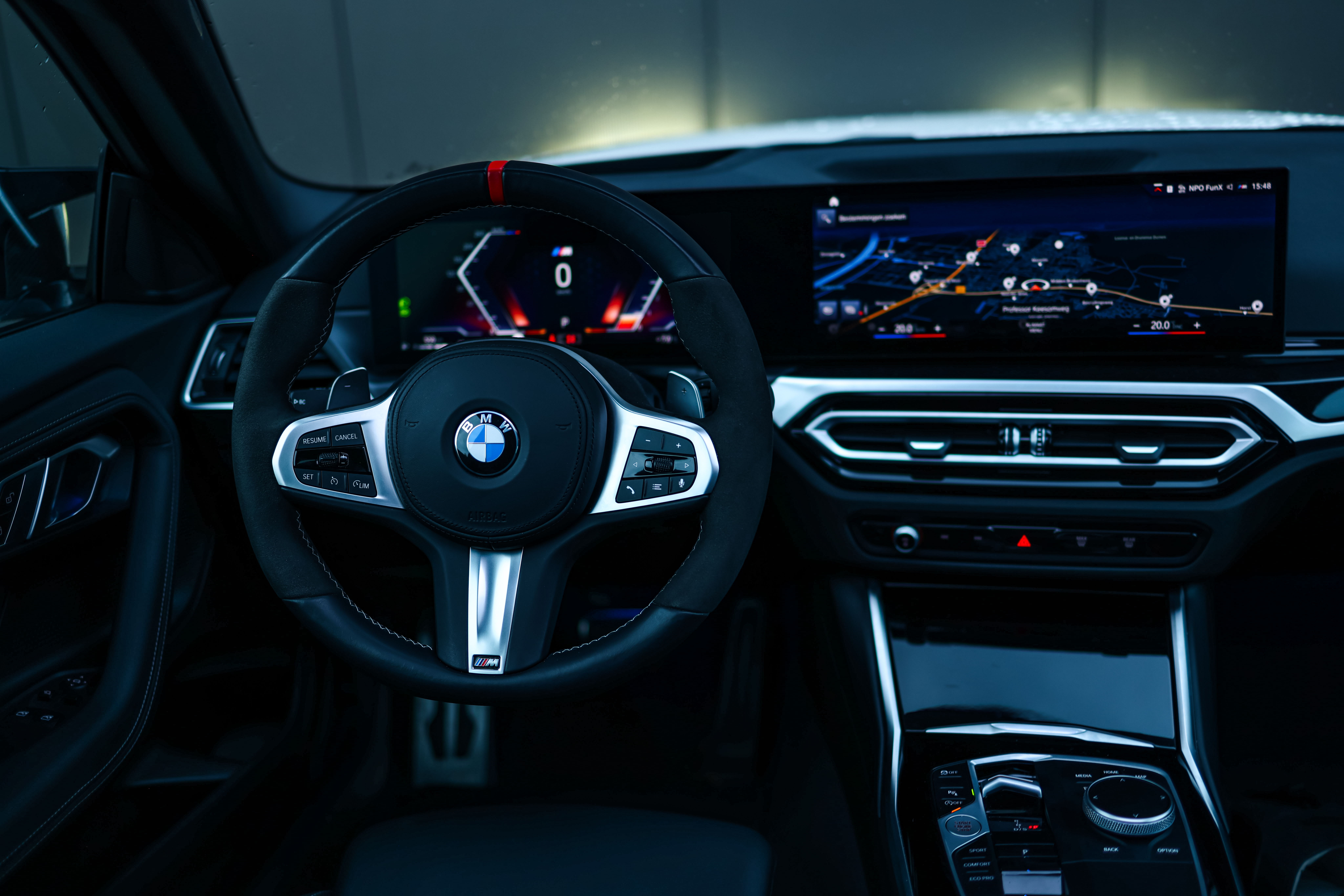 Ook binnenin merk je het verschil. Met een M Performance stuur in alcantara of leer, carbon schakelflippers en een sportieve armsteun voelt elke rit net wat intenser aan. De afwerking is van topniveau en de materialen zorgen voor een luxe, sportieve uitstraling. Zelfs details zoals LED-deurprojectoren met M-logo of een stijlvolle sleutelhoes dragen bij aan dat exclusieve gevoel.