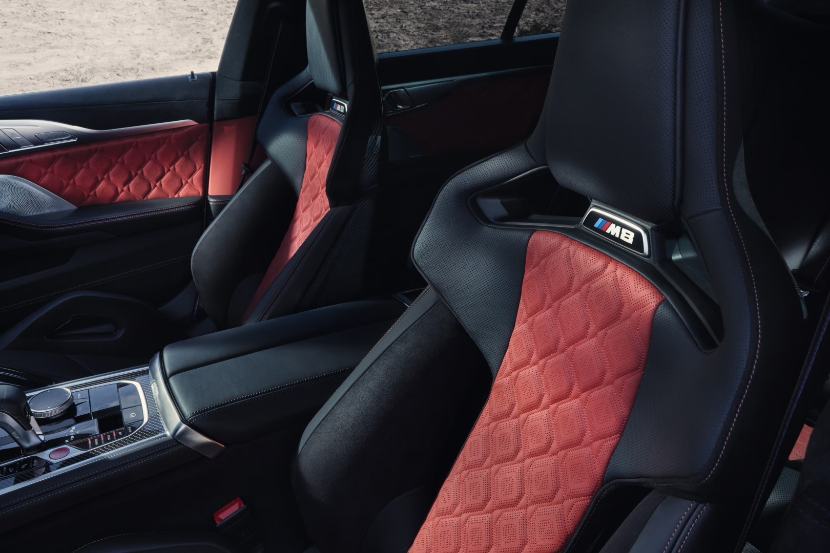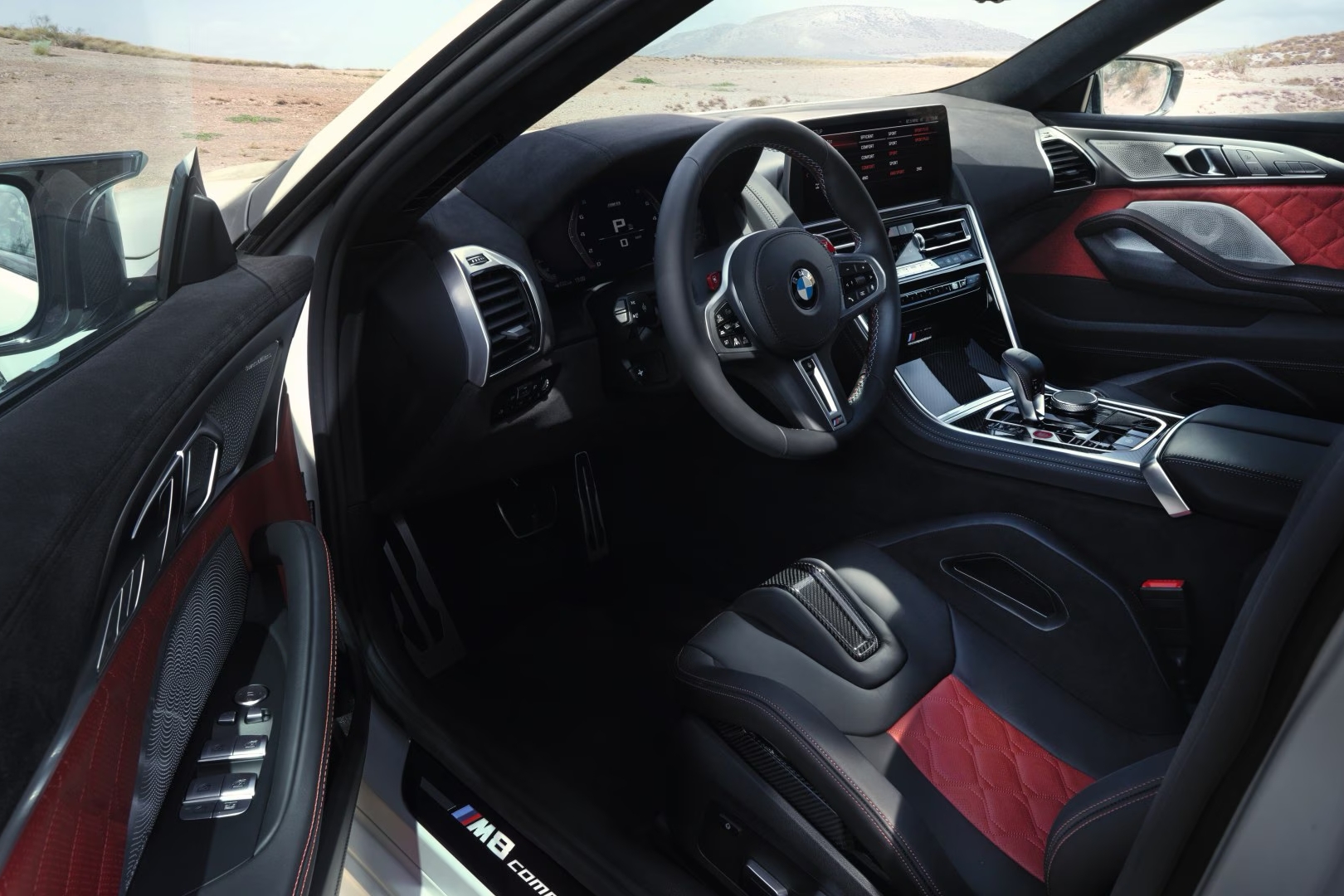 Het interieur van de BMW M8 Gran Coupé is ontworpen rondom controle, overzicht en comfort. De cockpit is volledig naar de bestuurder gericht en voorzien van digitale M-displays die rij-informatie duidelijk weergeven. De M Sportstoelen zorgen voor goede ondersteuning en zijn geschikt voor zowel sportief rijden als langere ritten. Hoogwaardige materialen zoals Merino leder, aluminium of optionele carbon afwerking dragen bij aan een luxe uitstraling, terwijl de indeling functioneel en overzichtelijk blijft.