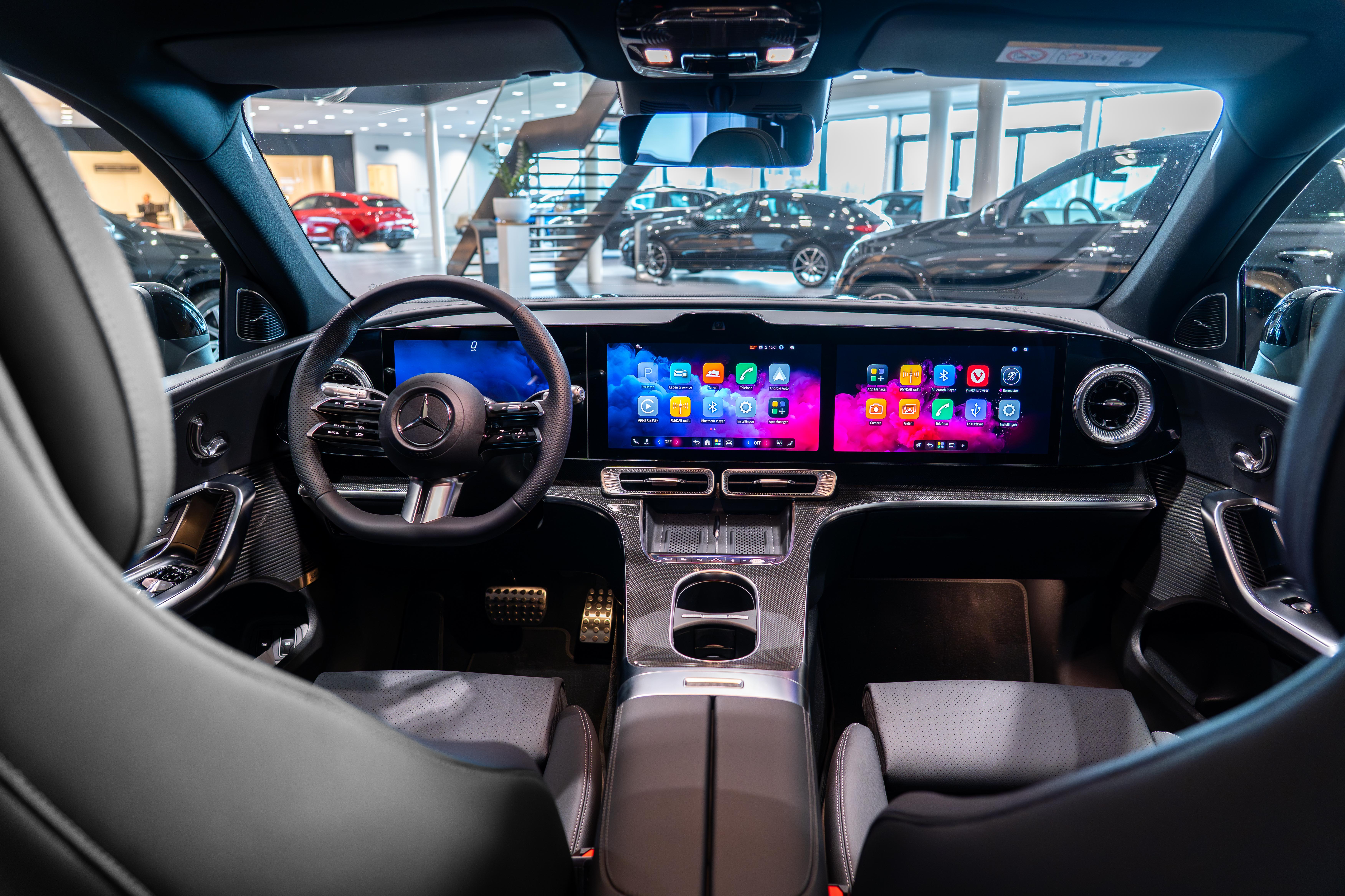 Het interieur wordt gedomineerd door het optionele MBUX Hyperscreen van maar liefst 99,3 cm breed. Dit is het grootste scherm dat Mercedes-Benz ooit heeft gebouwd. Het combineert instrumentenpaneel, infotainment en bediening in één doorlopend geheel. Dankzij kunstmatige intelligentie leert het systeem jouw voorkeuren kennen en past het zich daarop aan. Via hoge-resolutie achtergronden en persoonlijke stijlen creëer je jouw eigen sfeer. Zo voelt elke rit vertrouwd én bijzonder tegelijk.