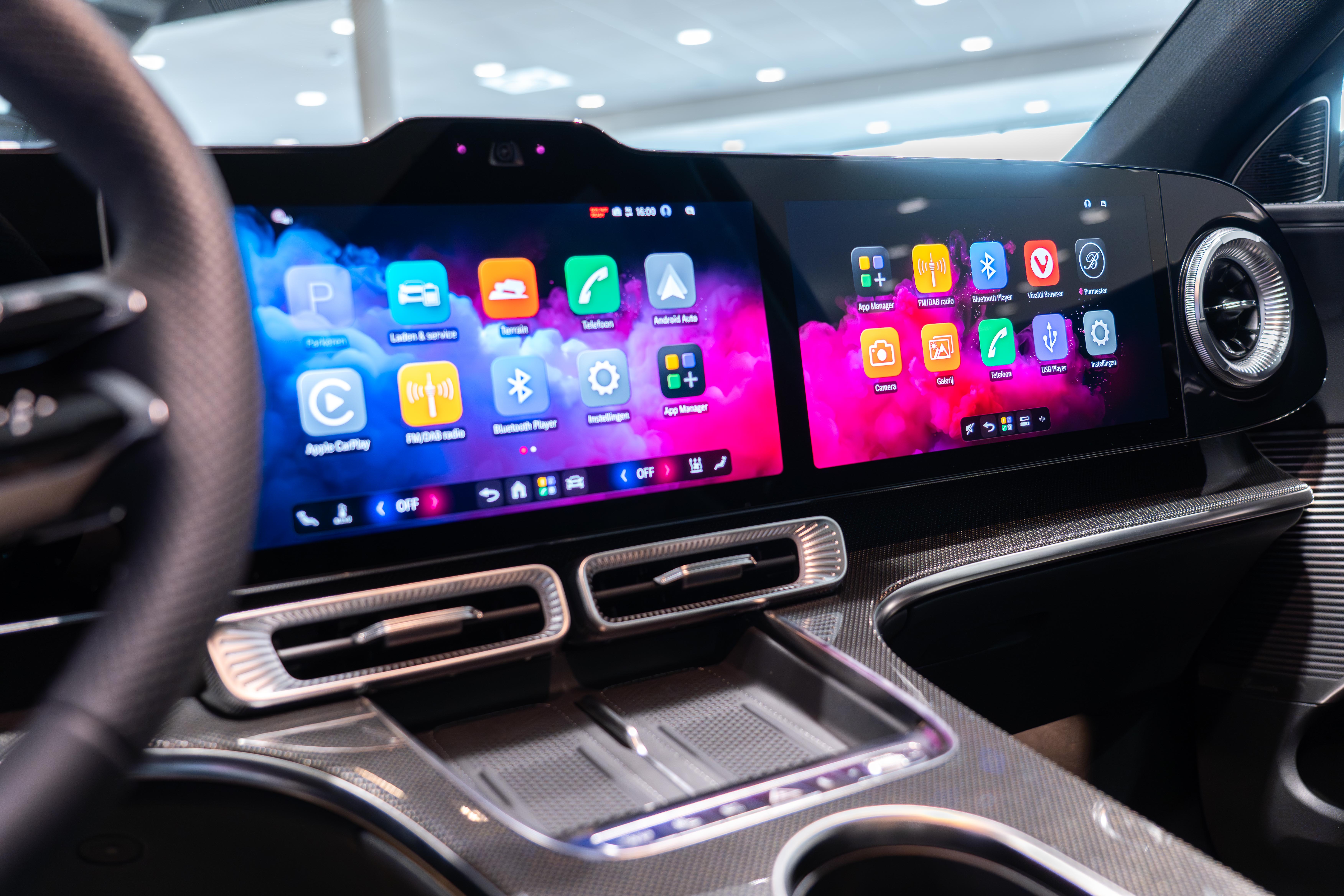 Een van de grootste blikvangers in het interieur is het digitale display. Standaard beschikt de auto over drie schermen die achter één doorlopende glasplaat liggen. Dit zorgt voor een strak en modern dashboard. Voor wie nog meer technologie wil, is er het optionele MBUX Hyperscreen. Dit enorme scherm strekt zich bijna over de volledige breedte van het dashboard uit en is met bijna één meter breedte het grootste display dat Mercedes-Benz tot nu toe in een auto heeft geplaatst.