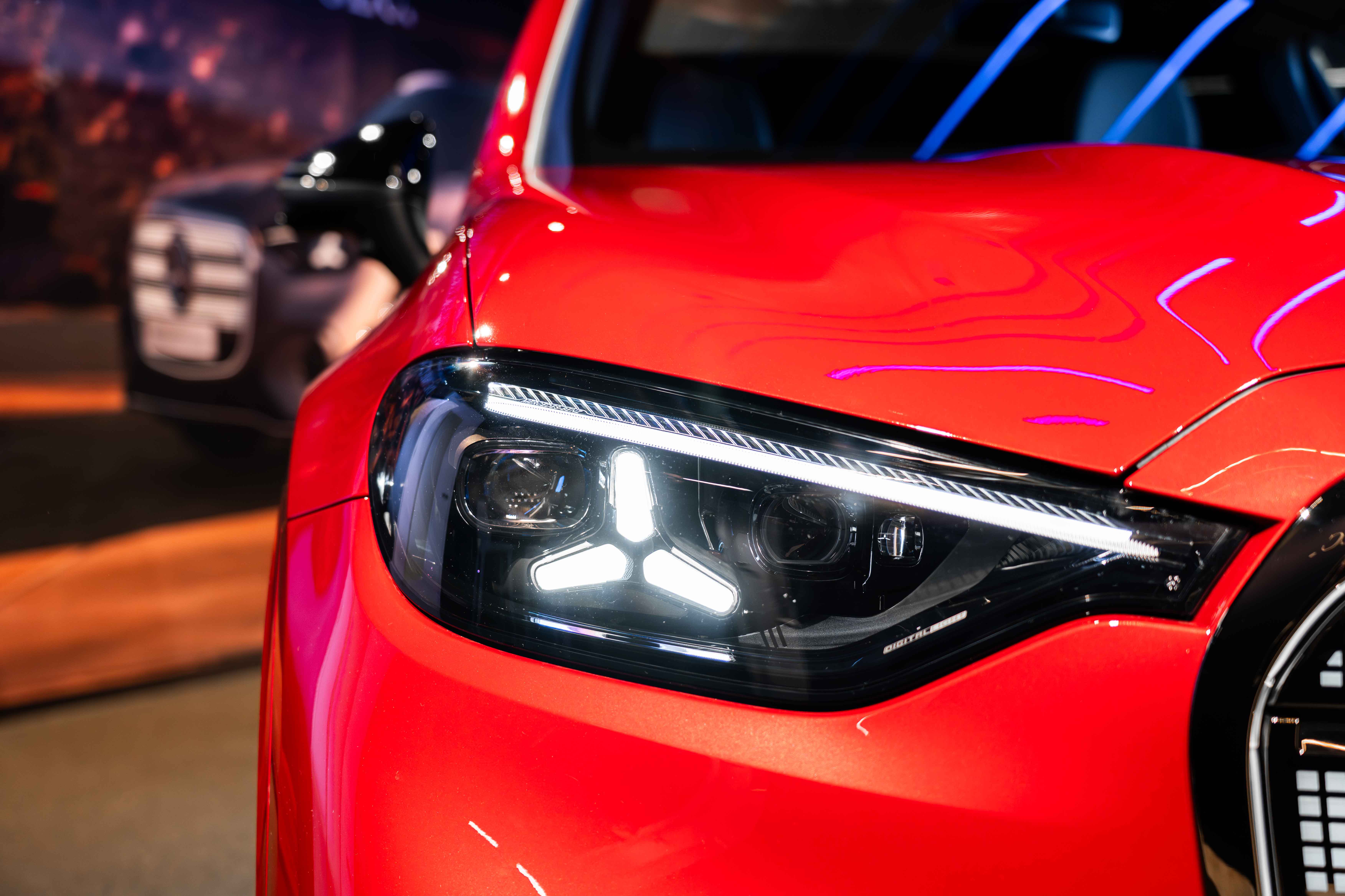 De koplampen geven de auto een dreigende uitstraling en in het lichtdesign zijn Mercedes-sterren verwerkt. Ook de motorkap draagt bij aan de krachtige uitstraling van de auto. De kenmerkende powerdomes zorgen voor een sportieve look, terwijl de brede wielkasten de robuuste SUV-proporties benadrukken.